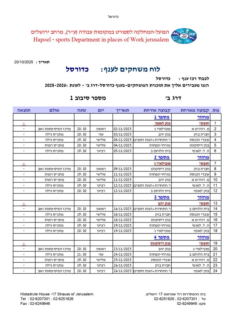 | 6 | בנק לאומי | 4 | 2 | 2 | 0 | 158 | 143 | 6 |