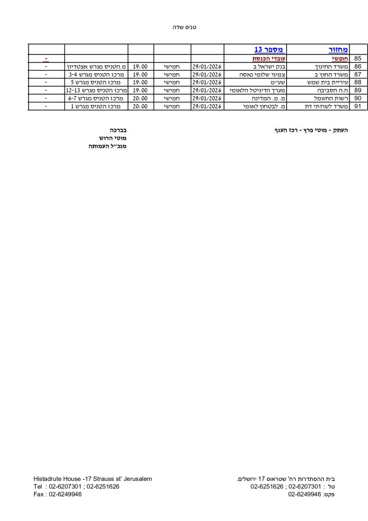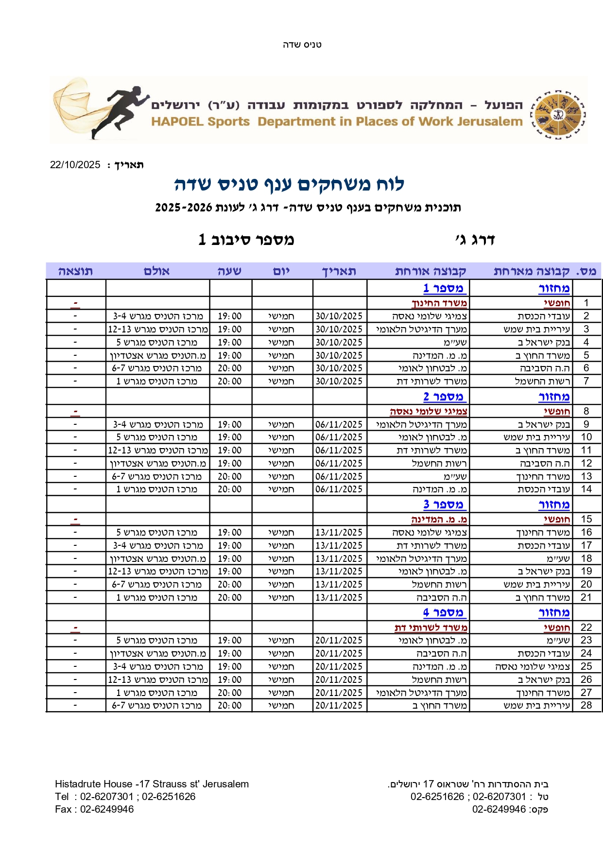 | 1 | עובדי הכנסת | 3 | 3 | 0 | 0 | 9 | 0 | 9 |