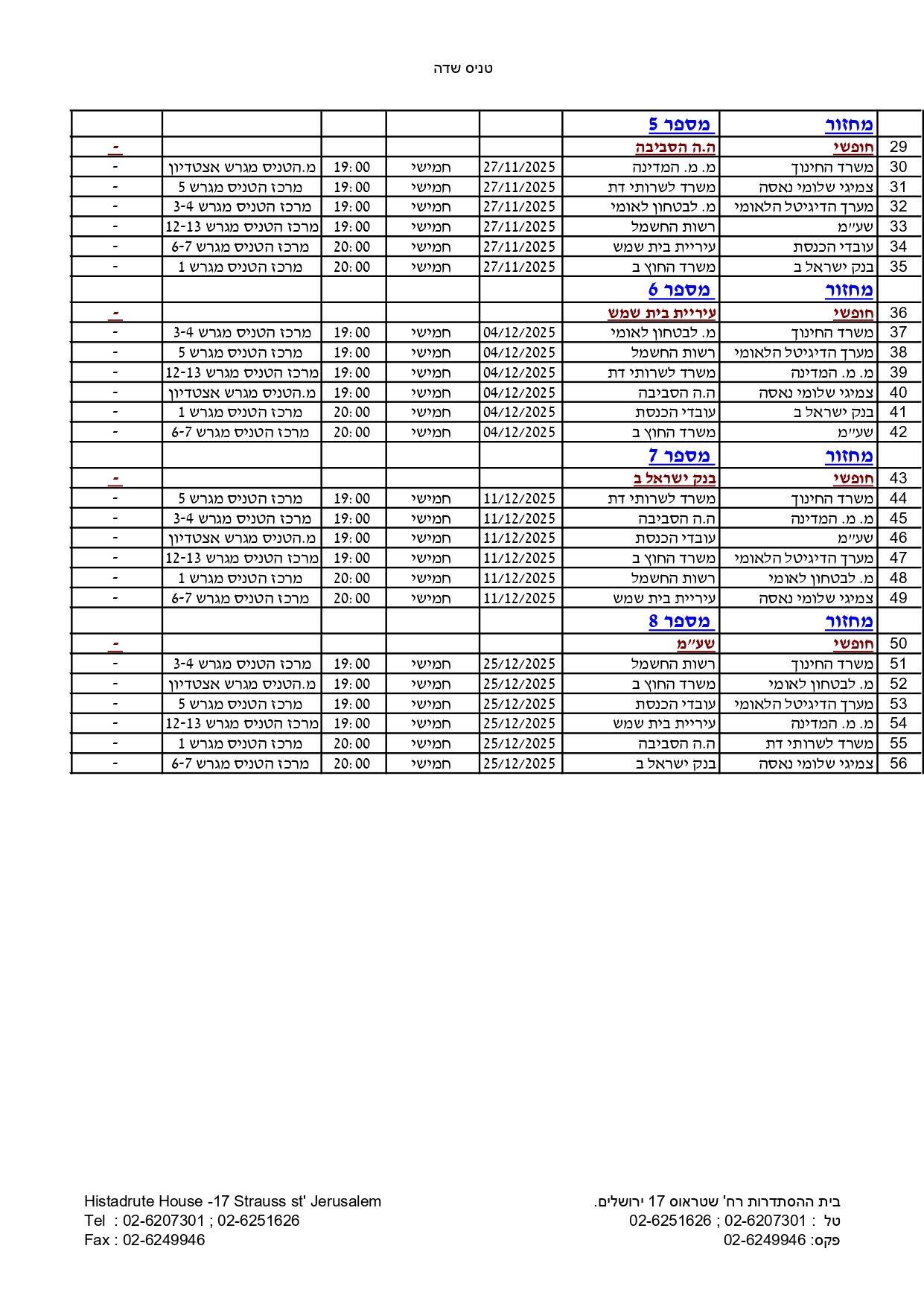 | 7 | רשות החשמל | 3 | 2 | 1 | 0 | 4 | 5 | 4 |