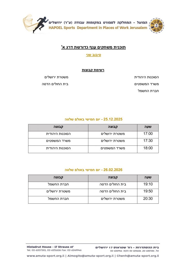 | 3 | ביה"ח הדסה | 4 | 2 | 2 | 0 | 4 | 4 | 6 |