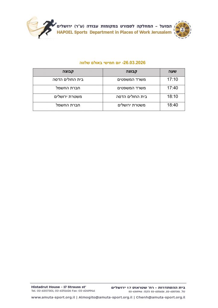 | 4 | משטרת ירושלים | 4 | 1 | 3 | 0 | 4 | 6 | 5 |
